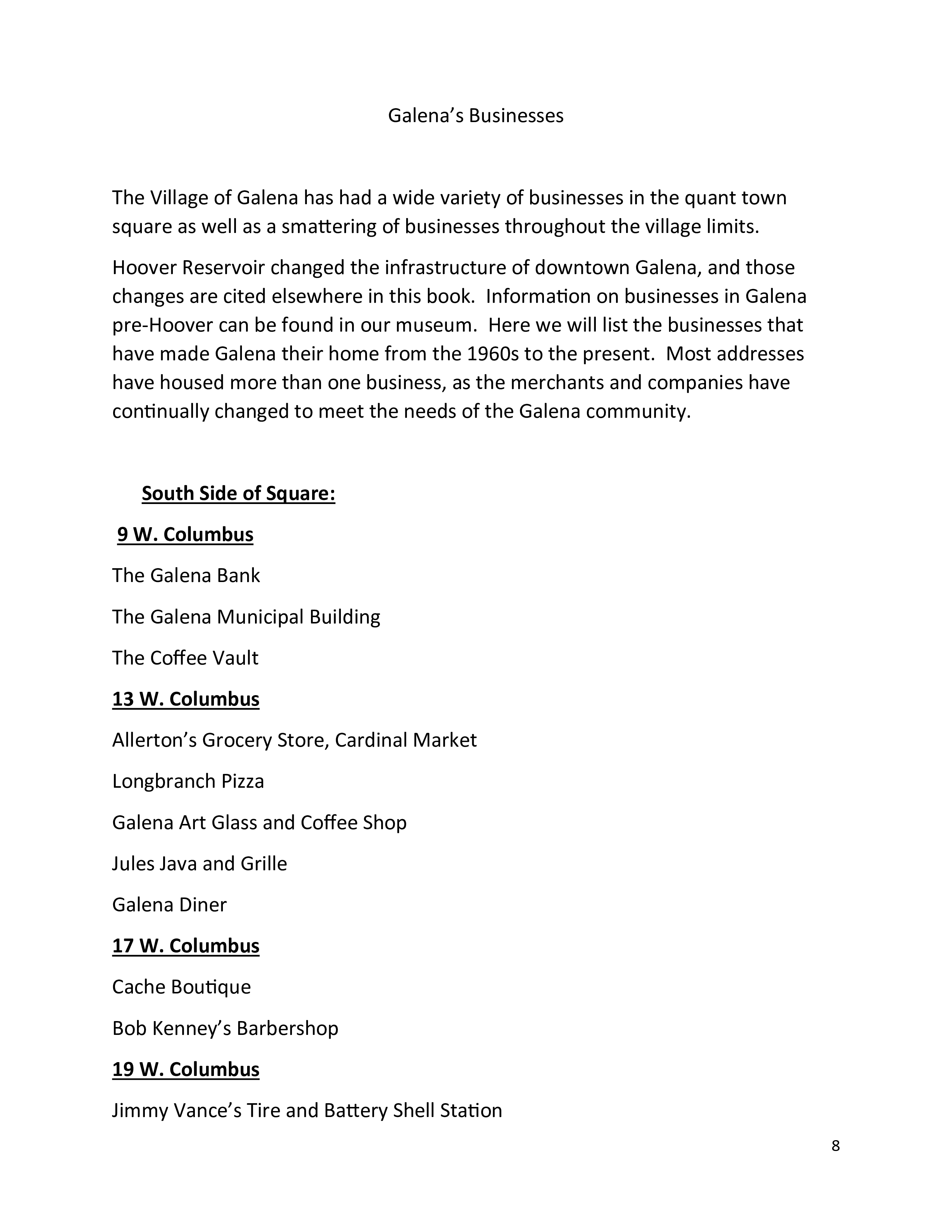 4. Galena's Businesses - page 8