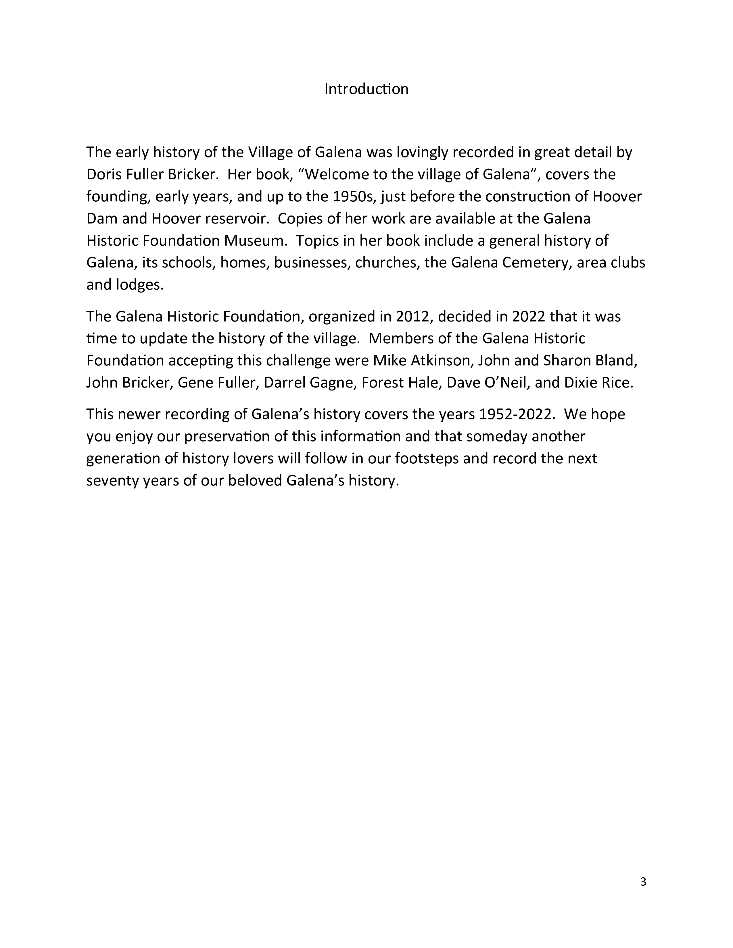 time to update the history of the village. Members of the Galena Historic.