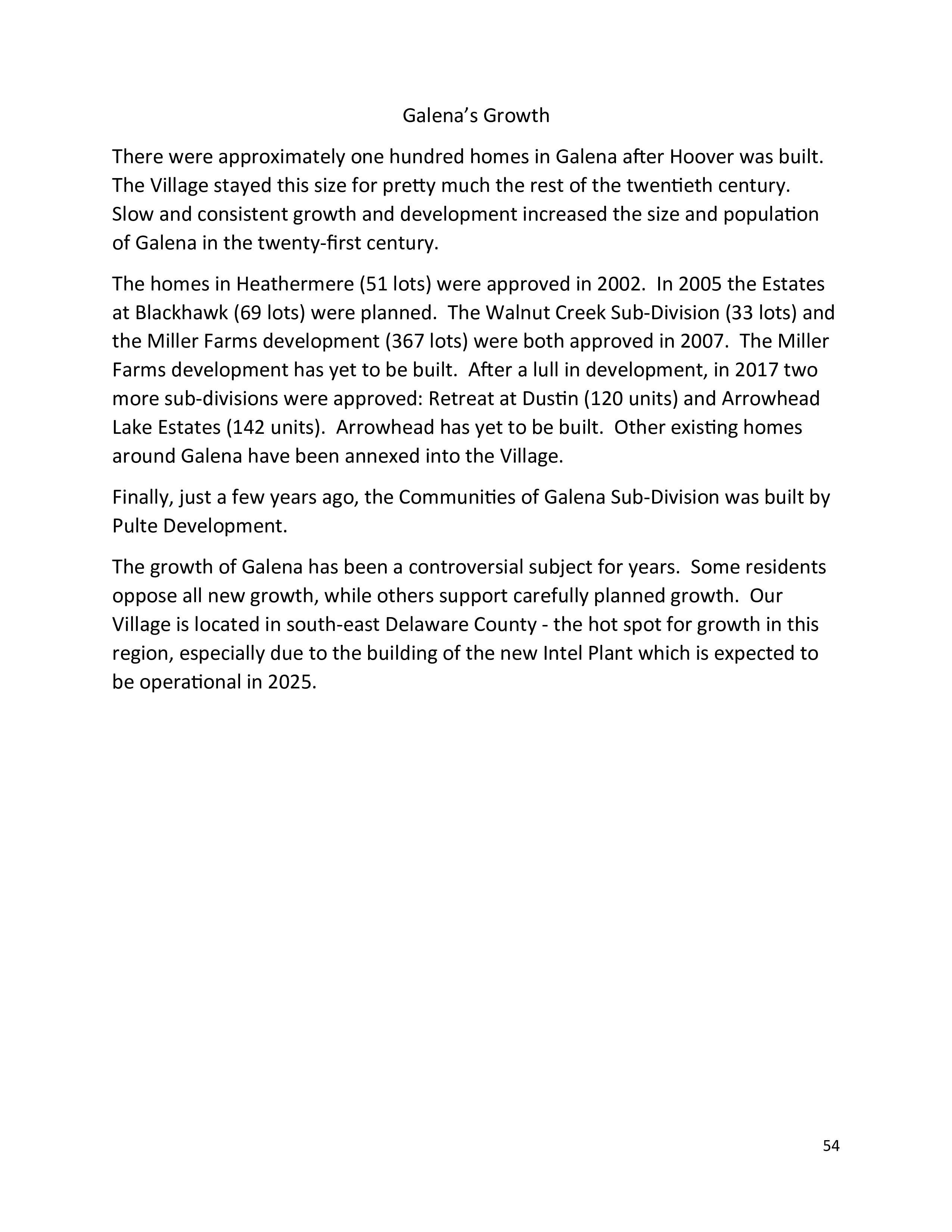 Finally just a few years ago, the Communities of Galena Sub-Division was built by